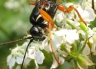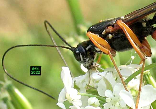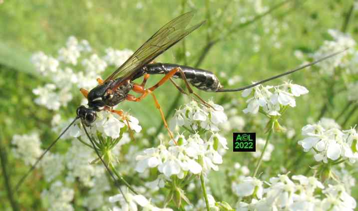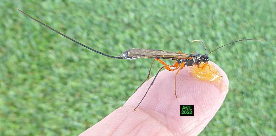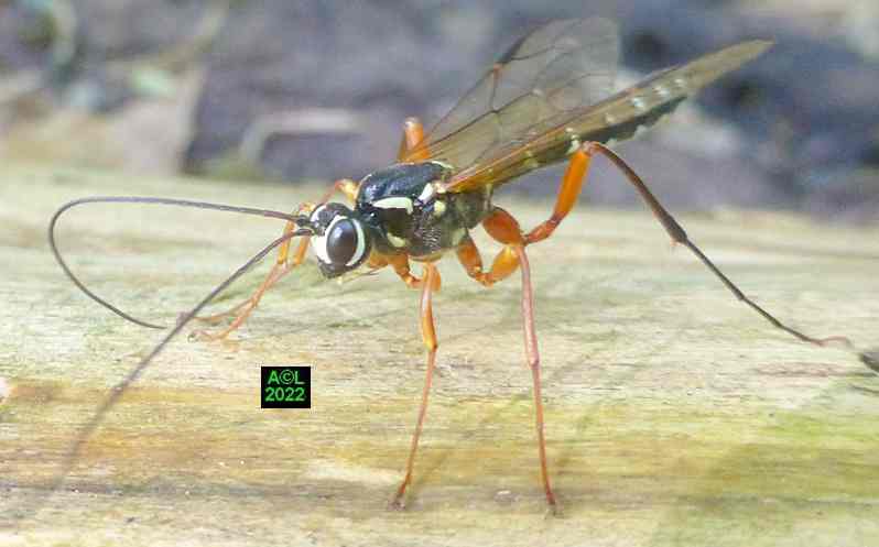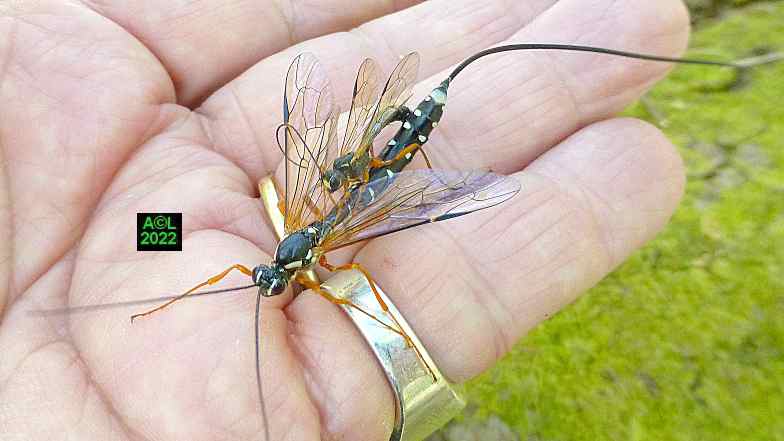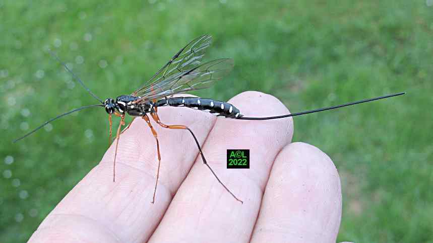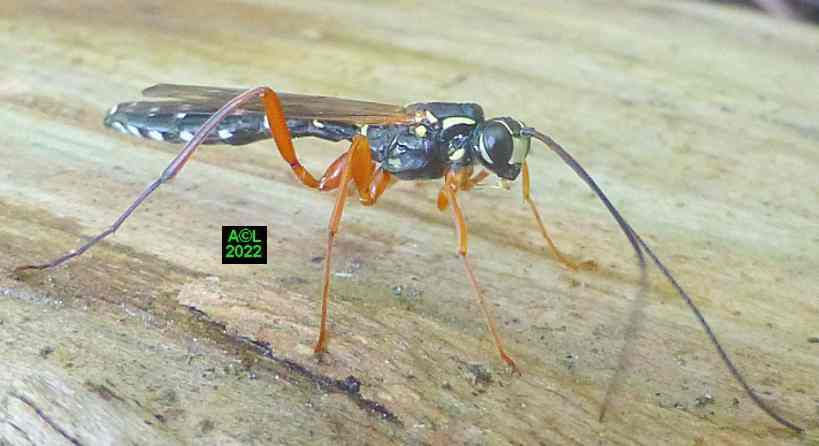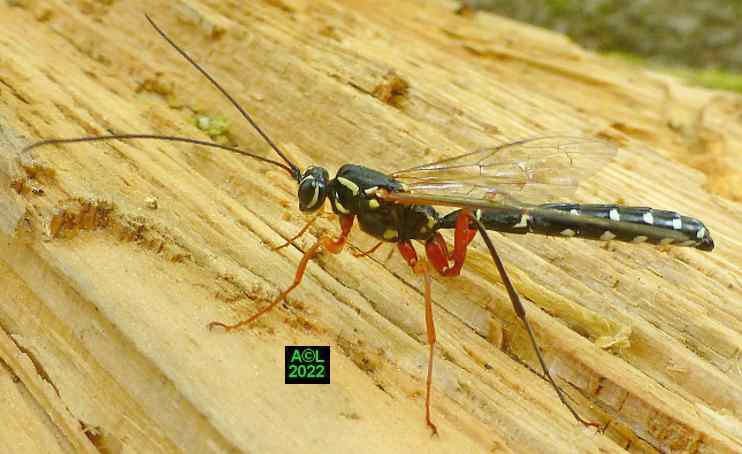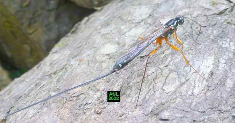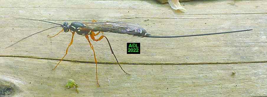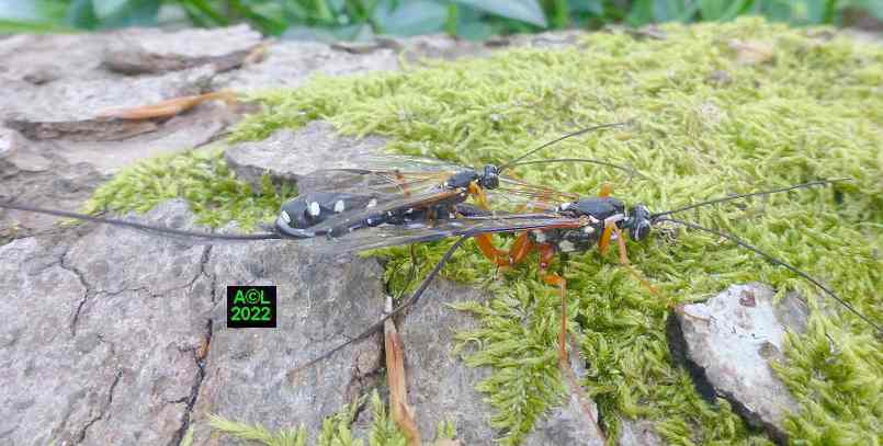 La Rhysse persuasive (Rhyssa persuasoria) fait partie des plus grands Ichneumons de notre faune, mais aussi d'Europe, et c'est notamment l'ennemie jurée des larves du Sirex géant (cf. page entomo dédiée). Comme sa cousine Rhyssa amoena, ou encore Dolichometus imperator (cf. page entomo "Rhagium inquisitor") ces Hyménoptères sont qualifiées de "parasitoïdes", car leur développement larvaire provoque à terme la mort de l'hôte, alors qu'un vrai parasite se contente de vivre à ses dépens. Ce sont également des "ectoparasites" car leurs larves se développent à l'extérieur de l'hôte, là où celles des "endoparasites" évoluent en interne ... CQFD !