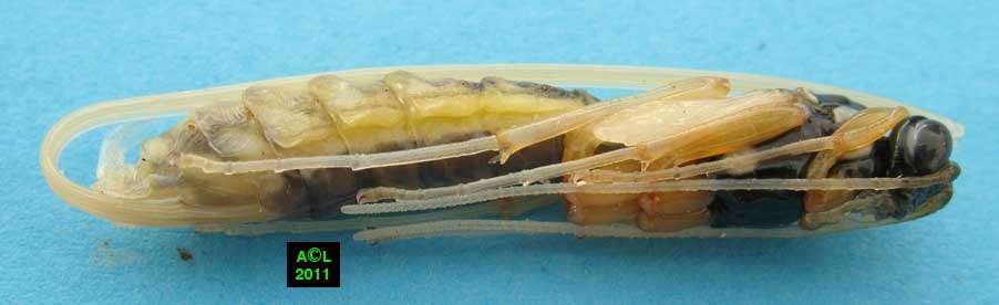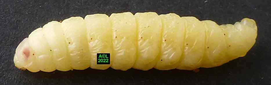 Pour corroborer le fait j'ai encore en mémoire le cas d'une larve de Rhagium bifasciatum, quelque peu " oubliée " dans un tube à essai, de surcroît à nu et sans la moindre parcelle de nourriture. Contre toute attente elle est parvenue à muer, et passer ainsi au dernier stade larvaire, au prix d'une étonnante et notable réduction de taille, avant de donner vie à un " minuscule " imago, via une nymphe à l'avenant. Pour anecdotique qu'il soit, le fait témoigne bien de la probable origine des " mini-rhysses " sans pour autant expliciter le cas des sirex.