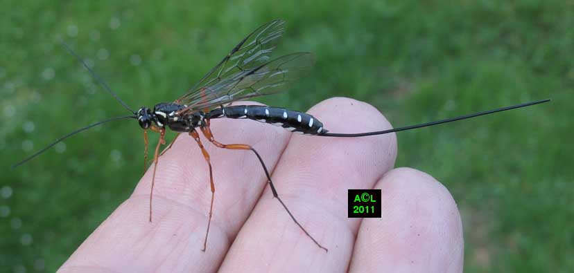 Dans la mesure où la logette nymphale de la rhysse peut se trouver jusqu'à 30 mm sous la surface du bois (de surcroît écorcé) la galerie vers l'air libre est-t-elle creusée par l'imago de la rhysse, ou pré-forée par la larve. La question mérite en effet d'être posée car les mandibules de la Rhysse ne me semblent pas plus adaptées au forage que celles du grand capricorne du chêne (Cerambyx cerdo) dont l'émergence est présicément anticipée par la larve. En d'autres termes il suffit à ce grand et bel insecte de quasi "pousser la porte", puisque le grignotage d'un ou deux millimètres d'écorce lui permet de gagner l'air libre.