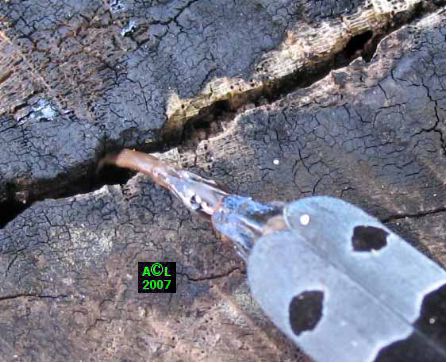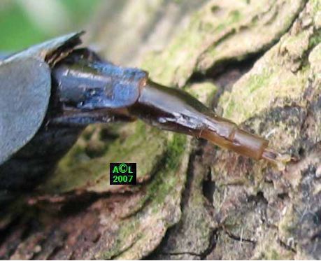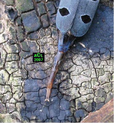 Le développement larvaire semble demander 3 ans, et les galeries sont relativement superficielles. Les émergences des l'adultes se produisent de juin à juillet selon les régions et l'altitude. A noter que les trous de sorties, nettement elliptiques, sont fréquemment observables sur les parties dépourvues d'écorce, et notamment au niveau des anciennes coupes sur les arbres dits "têtards".
