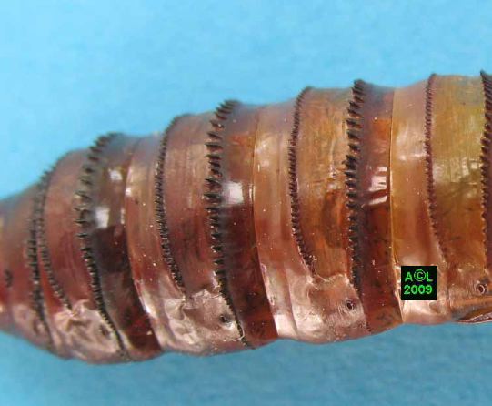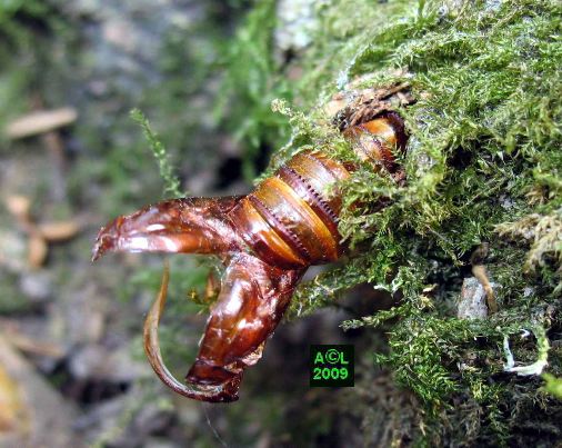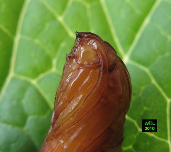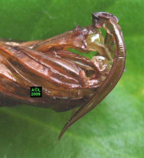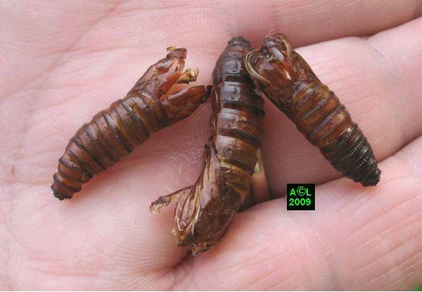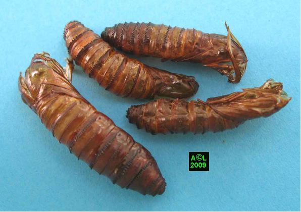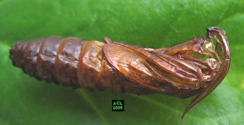mi-corps, et après l'émergence du papillon, l'exuvie