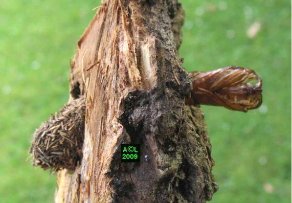 situation hors sol, la chrysalide va s'extraire du cocon à
