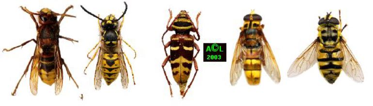 totalement inoffensifs (clytes, syrphes, etc...), leur seul tort,