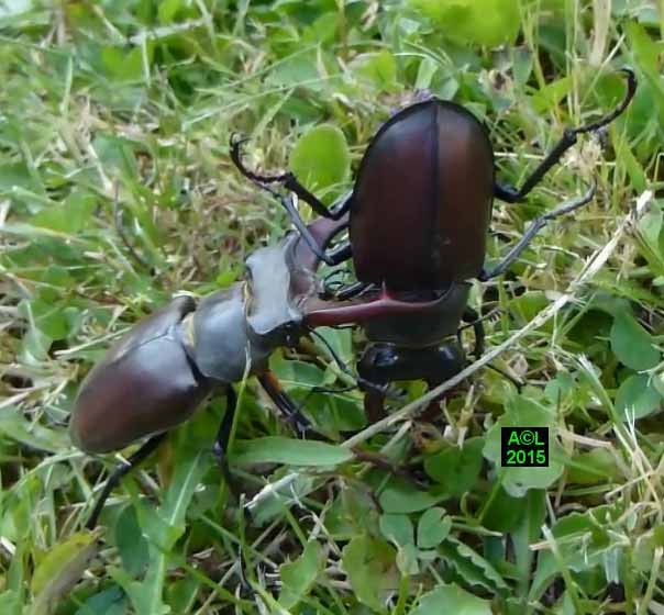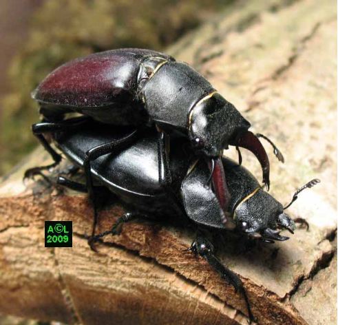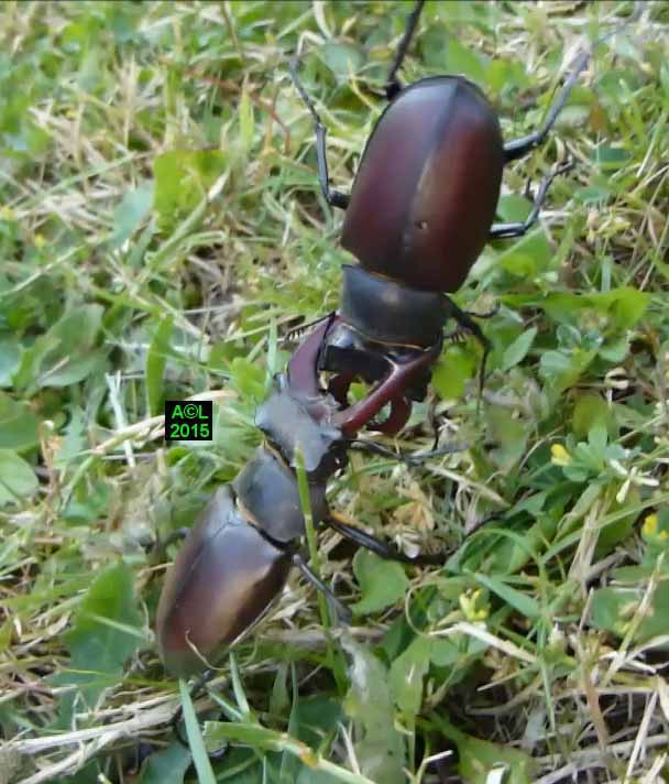 L'accouplement s'est prolongé durant plusieurs heures, et les protagonistes ont été trouvés "tête-bêche" (disposition fréquente chez les insectes), là où les lucanes cerfs-volants se "chevauchent". Toute règle ayant ses exceptions le "grand chambardement" a donné lieu, dès le lendemain, à un nouvel accouplement, mais cette fois de jour ...et par chevauchement ! De quoi y perdre son latin, sauf à croire que les sino s'adonnent au kamasutra sans le savoir ... comme Monsieur Jourdain faisait de la prose !