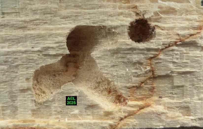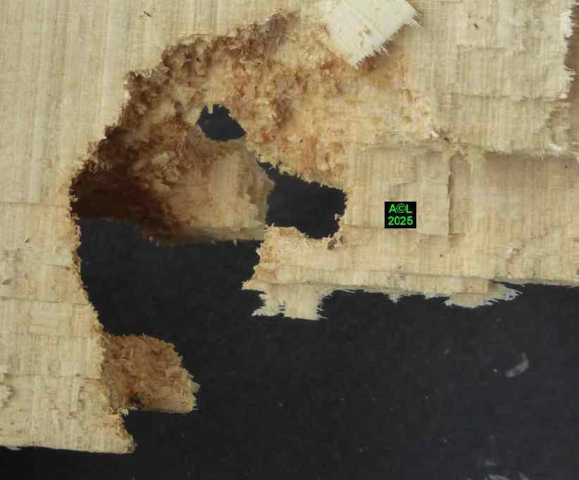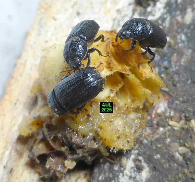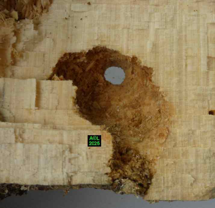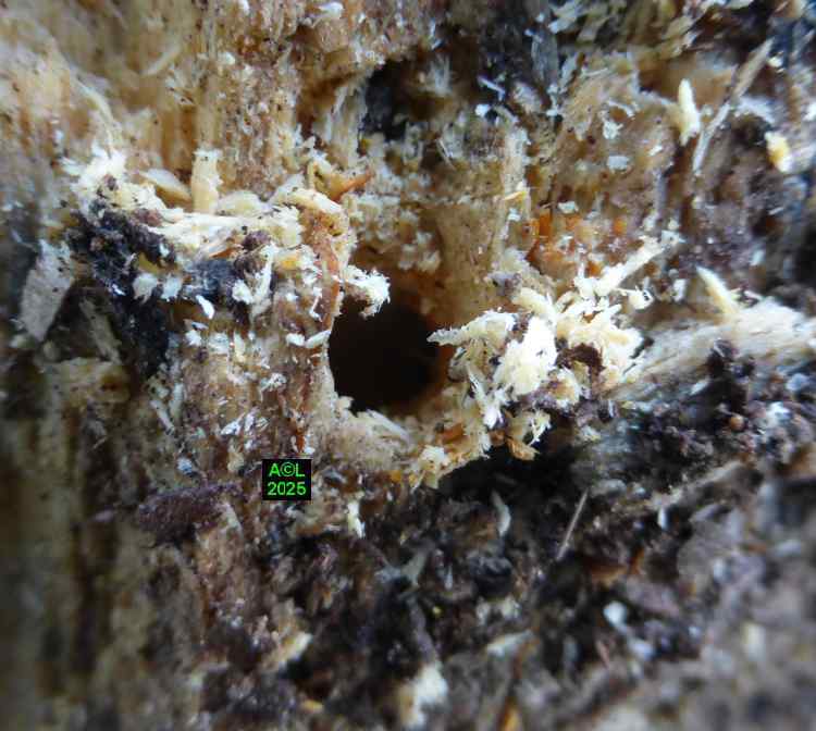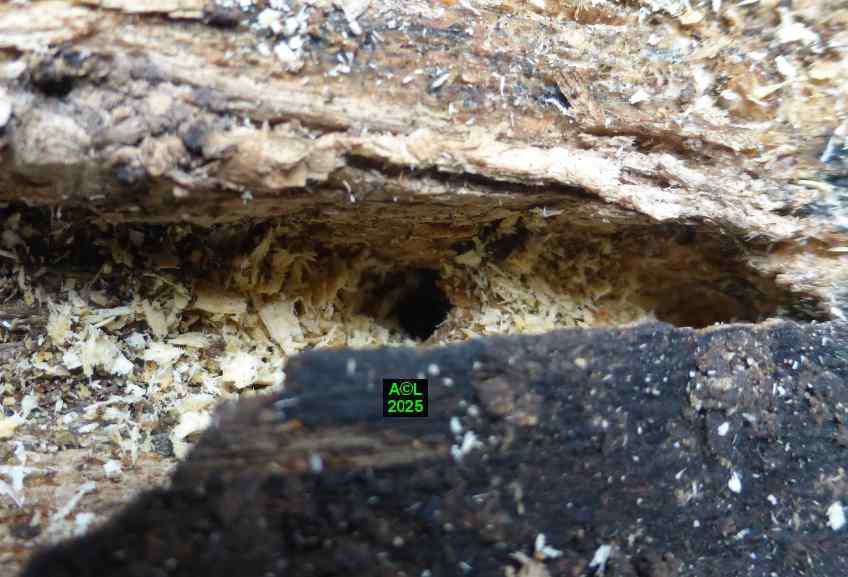 Pour que les bestioles puissent "vivre leur vie" dans de bonnes conditions j'ai opté pour 2 gros morceaux de hêtre "mûrs à point" (soit 1 par box), ce qui m'a semblé le mieux répondre aux attentes des bestioles, tout en permettant l'observation aisée de leurs activités, disons de "plein air". Par contre, tout ce qui se passe en interne est évidemment inaccessible, visuellement parlant. L'accès aux pontes, aux jeunes larvules, ou encore au réseau des galeries, implique de morceler l'habitat, et donc le détruire, ce que j'ai été amené à faire pour la plus petite des "bûches". Est-il besoin de le préciser, je me borne comme toujours à observer et constater, même si cela revient parfois à contester à tort ou à raison !
