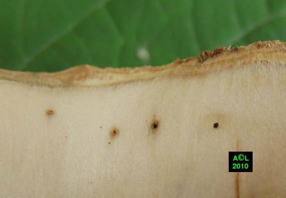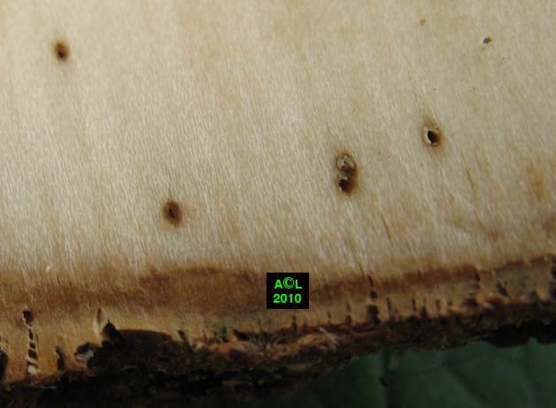 des oeufs s'accompagne d'un ensemencement fongique (Stereum sp.),