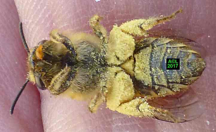 Le leurre sexuel est si efficace, et les triongulins si nombreux ( les qualifier d'innombrables relèverait de l'euphémisme ! ), que l'existence même des abeilles du lierre semble tenir du miracle. Désireux d'en avoir le cur net je suis allé "piocher" (au sens propre ! ) dans la zone du site la plus fréquentée par lesdites abeilles, et la mieux "dotée" en triongulins. Vous l'aurez compris il s'agit de la zone du "bouleau racho aux 25 pontes" figurant au début de la page précédente.