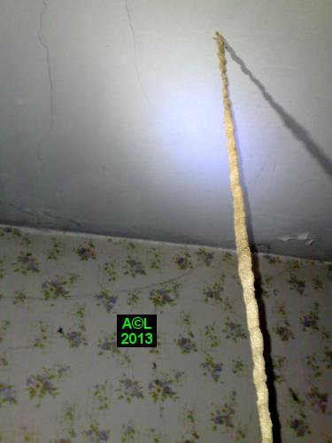le montrent, il pend en effet du plafond, et cela sur plus d'un