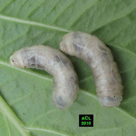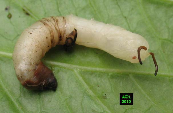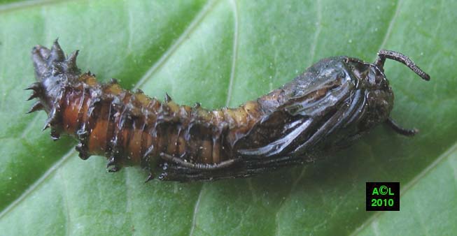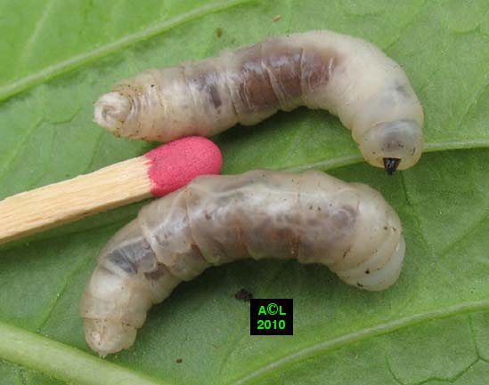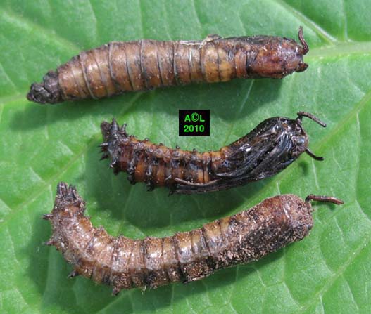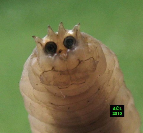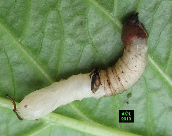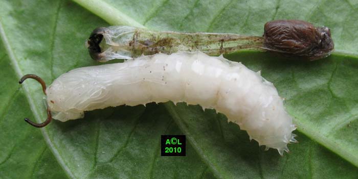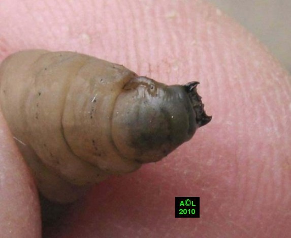 1)- larve en pré-nymphose; 2 & 3)- larve en