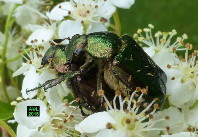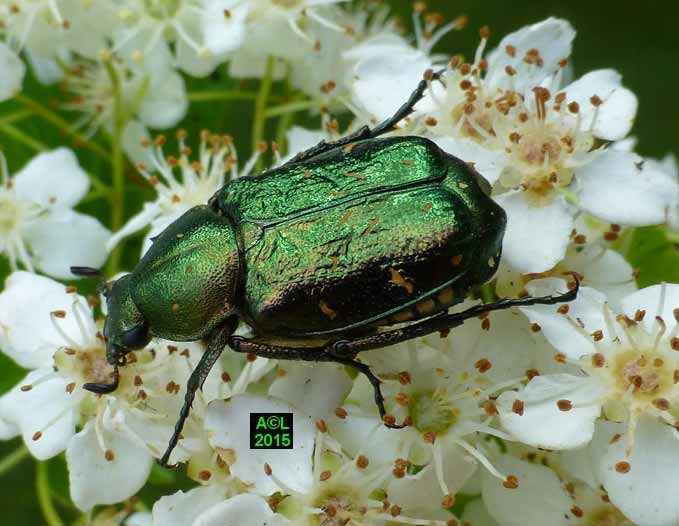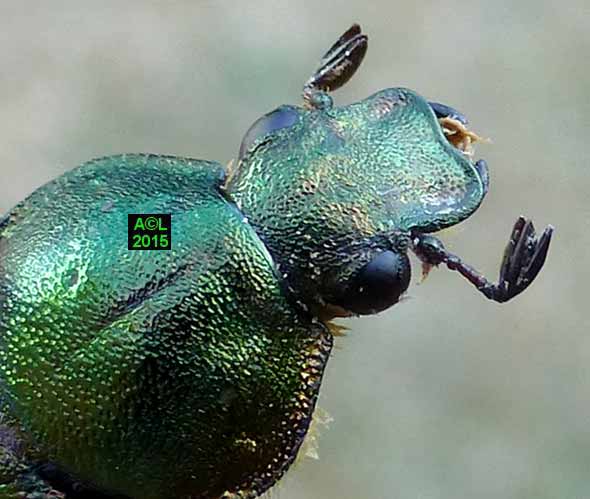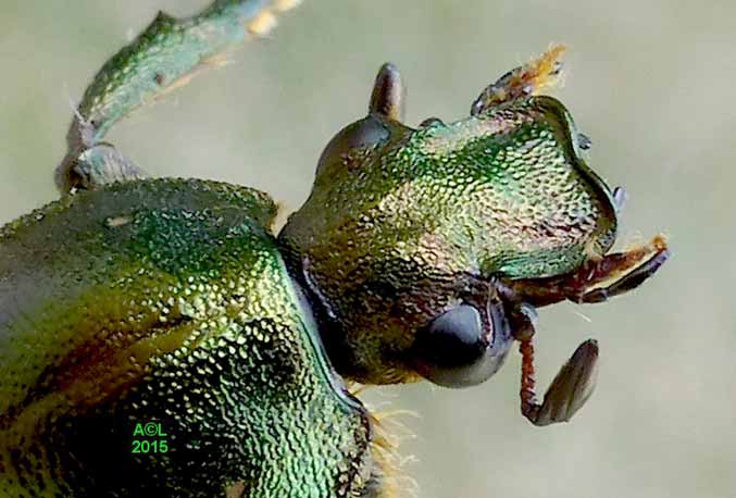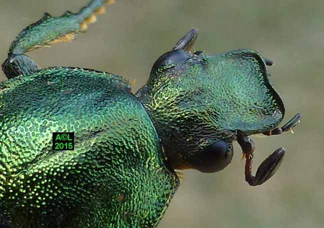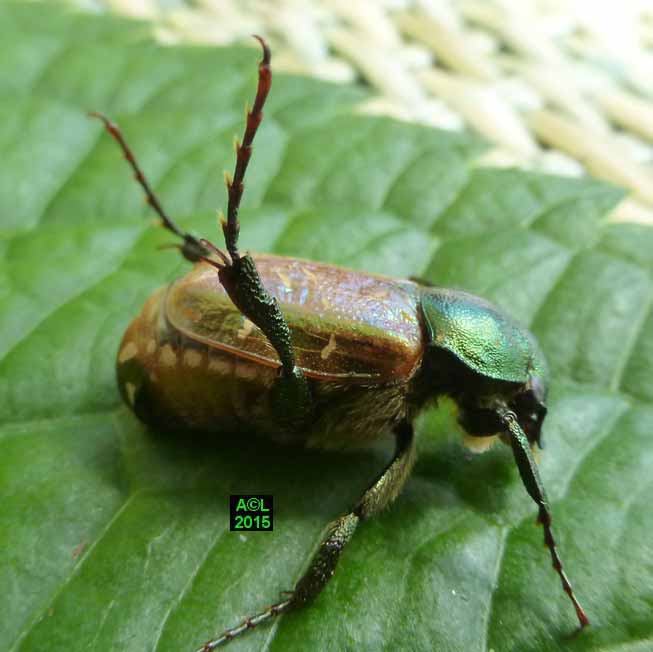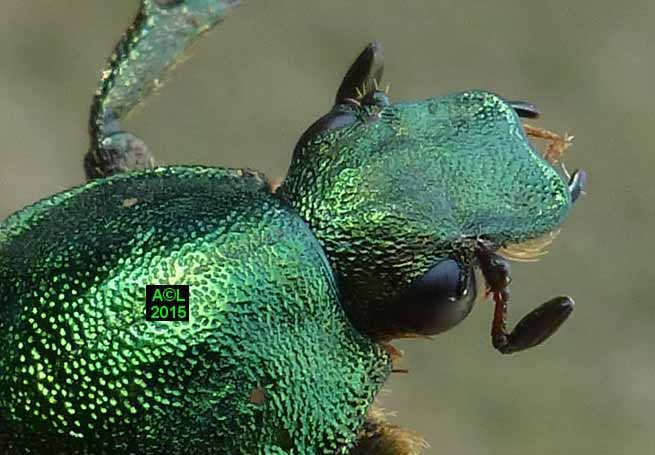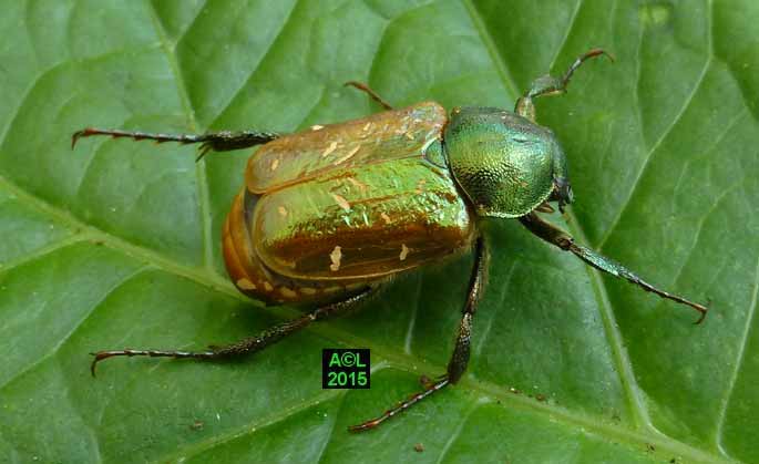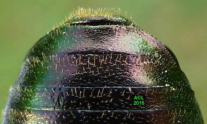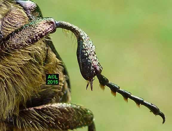 Par contre la dénomination latine n'a rien à voir avec la couleur, et si la "traduction" de nobilis (= noble ! ) va de soi, celle de Gnorimus est nettement moins évidente. En effet, les descripteurs ( Lepelletier et Serville, 1828) sont allés "piocher" chez les grecs ( si je puis dire ! ), le terme de gnorimus pouvant se traduire par "qui se reconnaît aisément" ... et le fait est ! ... du moins pour l'initié !
