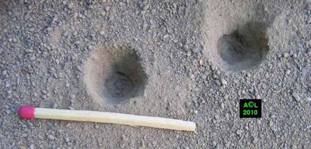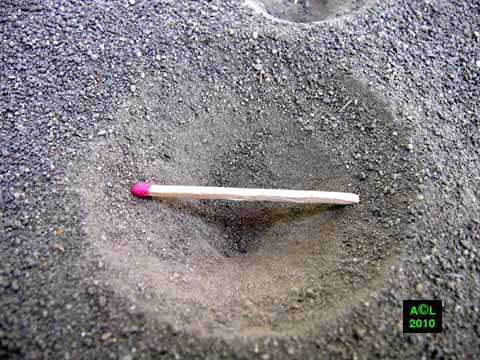 La taille des pièges est évidemment fonction de celle des larves, et donc du stade larvaire atteint ( il y en a 3, en principe ! ). Non moins logiquement elle dépend également de l'épaisseur du substrat. Dans le meilleur des cas la profondeur du piège peut approcher les 20 mm, pour un diamètre excédant 25 mm, mais la norme est respectivement de 15 et 20 mm.