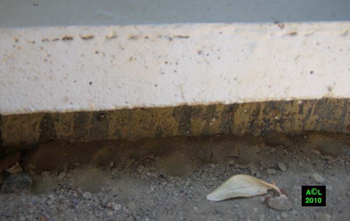 A priori on pourrait croire toute vie impossible, l'ensoleillement ajoutant encore à l'extrême aridité du substrat, mais notre Vermileo trouve là chaussure à son pied. Encore faut-il y regarder de près, et même de très près, car il s'est installé sous le rebord des fenêtres, tout contre la maçonnerie, là où l'ombrage prévaut, la hauteur disponible n'excédant pas quelques cm.