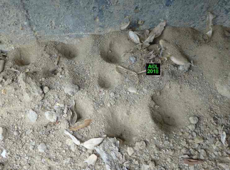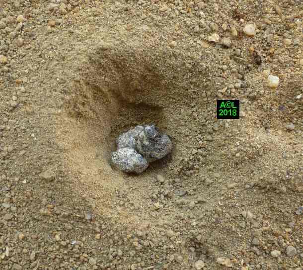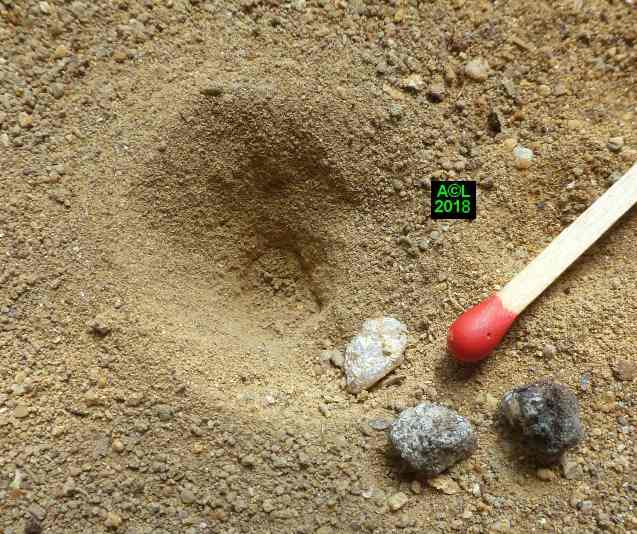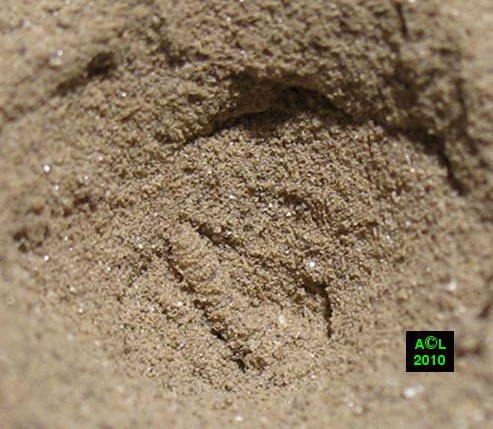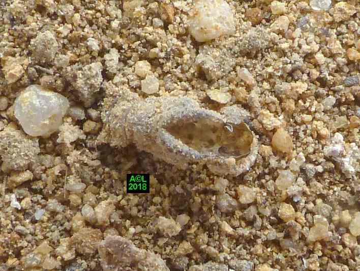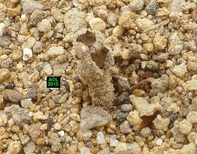 En dépit de la variabilité des sites, et donc de la nature du substrat, la quasi pulvérulence des parois est de règle car cela conditionne l'efficience du piège. Tout ce qui ne correspond pas à l'attente de la larve est donc systématiquement éliminé, et en l'occurrence fort adroitement éjecté. Présentement j'avoue avoir un peu abusé de la "bonne volonté" de mes pensionnaires, mais la démo n'en est que plus significative.